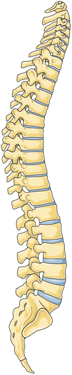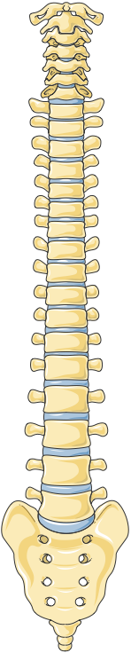The vertebral column, or spine, is made up of 33 vertebrae, divided into five regions: cervical, thoracic, lumbar, sacral, and coccygeal.